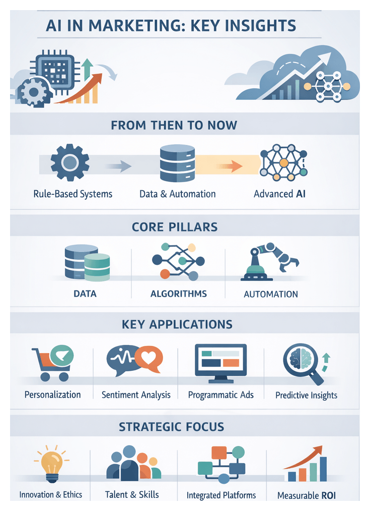 - Strategic insights into how AI elevates customer-centricity, treats data as a differentiator, enables agile experimentation, and unifies the marketing ecosystem through end-to-end integration.