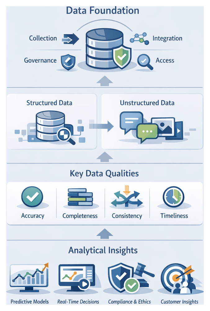 - Data as Fuel: Quality, volume, and diversity of data—ranging from transactions to social posts—are essential for model training and inference.