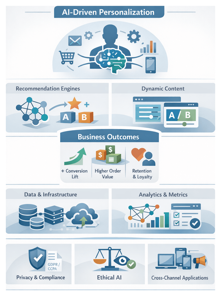 - Ethics and Governance: Policies for model interpretability, bias mitigation, and data privacy that build consumer trust and regulatory compliance.