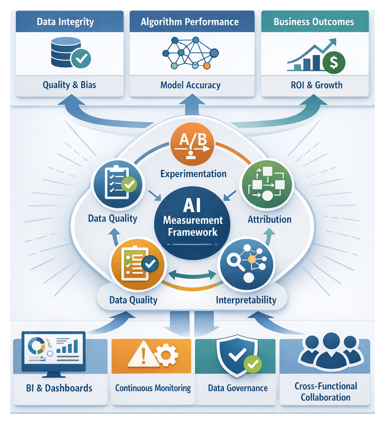 - How can I measure ROI for AI initiatives?: Use control and test groups to quantify incremental lift. Compare incremental revenue or cost savings against program costs. Track metrics like revenue uplift per segment, reduced acquisition cost and efficiency gains.