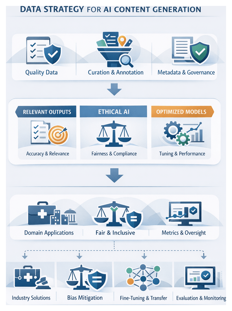 - Model Performance and Reliability: Ensuring generative systems deliver coherence, factual accuracy, and alignment with brand voice across domains and languages.