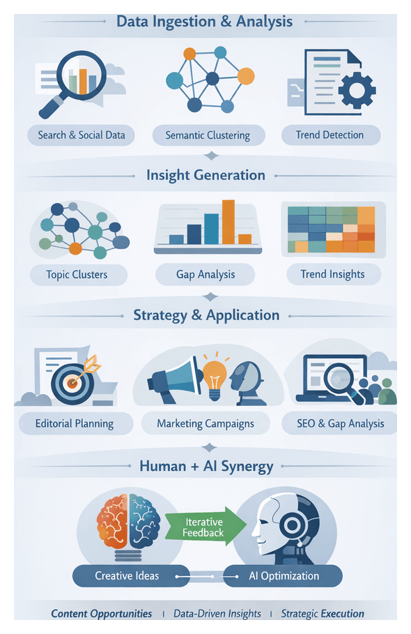 - Creative Integration: Employ semantic clustering, trend analysis, and prompt design methodologies to guide ideation and co-authoring workflows, and extend AI applications to multimedia and multilingual contexts.