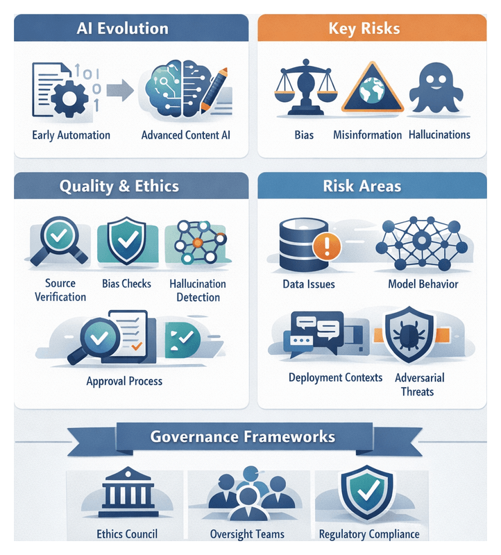 - Bias and hallucinations: Outputs may include stereotypes or inaccuracies without robust editorial safeguards.