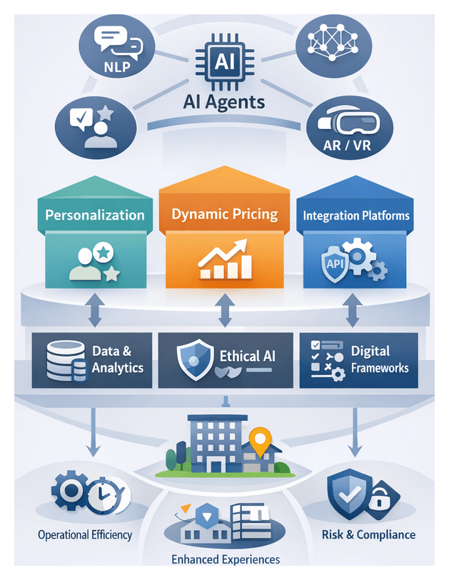 - Data Infrastructure: Unified platforms for guest profiles, booking records and sensor feeds with real-time streaming.