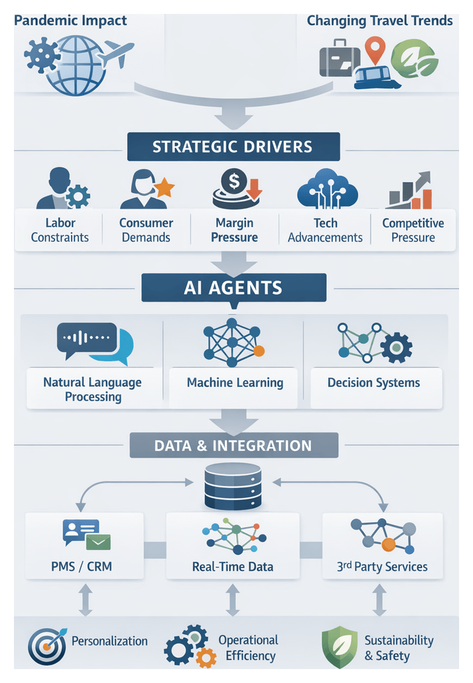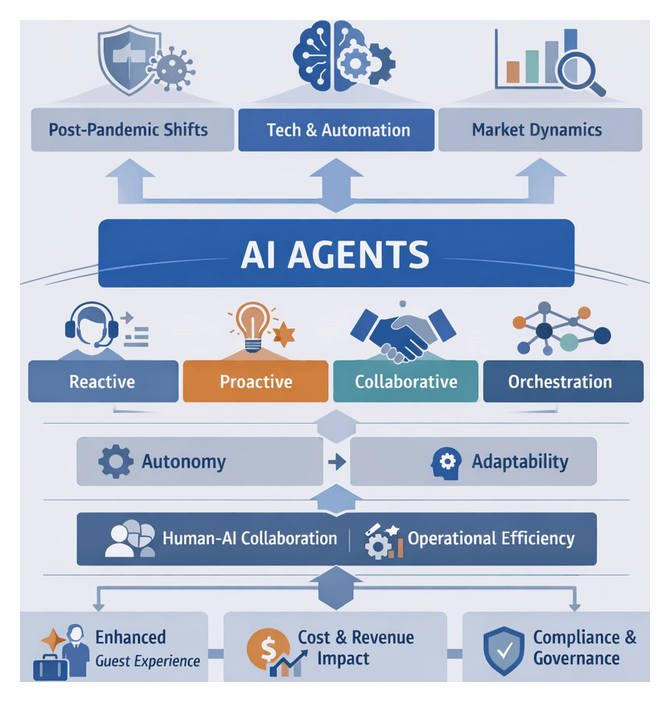 Organizations that embraced data-driven decision-making, streamlined operations and digital engagement have outpaced peers constrained by legacy systems. In this context, AI agents—autonomous software entities that perceive environments, reason over data and execute tasks—emerge as strategic enablers, bridging silos and orchestrating end-to-end service delivery. They resolve guest inquiries, optimize staffing and adjust pricing dynamically, liberating staff from routine work and enabling scalable personalization.