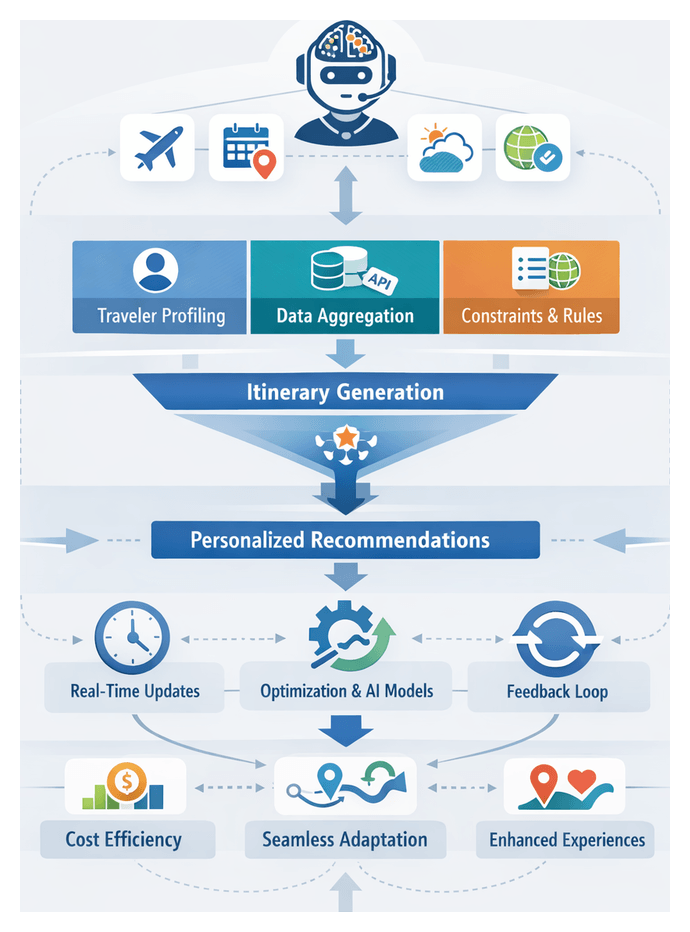 - Probabilistic Models: Use statistical reasoning for advisory scenarios, proposing personalized itineraries that human advisors validate and refine.