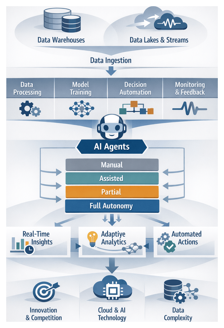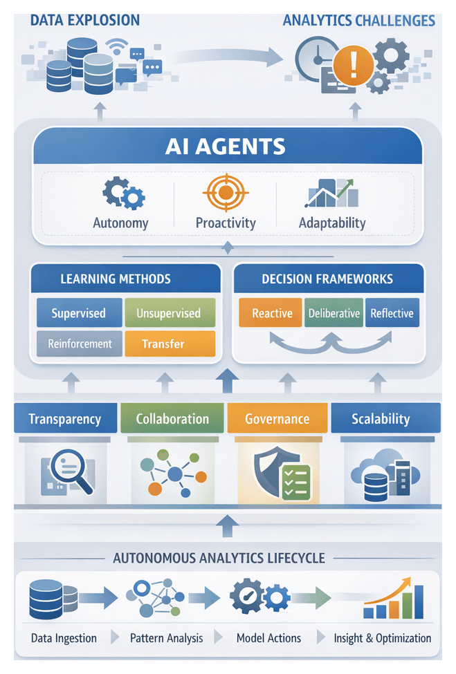 At the heart of the autonomous analytics paradigm are AI agents—software entities endowed with autonomy, proactivity and adaptability. Autonomy enables agents to initiate, plan and execute analytical workflows without granular human direction. Proactivity equips them to anticipate needs by monitoring performance indicators and initiating corrective actions before thresholds are breached. Adaptability ensures that agents refine their models and strategies in response to evolving data patterns, schema changes or shifting business priorities. Two additional attributes—transparency and collaboration—are essential for auditability and trust: transparency surfaces decision logs, model feature importances and rationale artifacts, while collaboration supports iterative feedback loops with human analysts and adjacent systems.