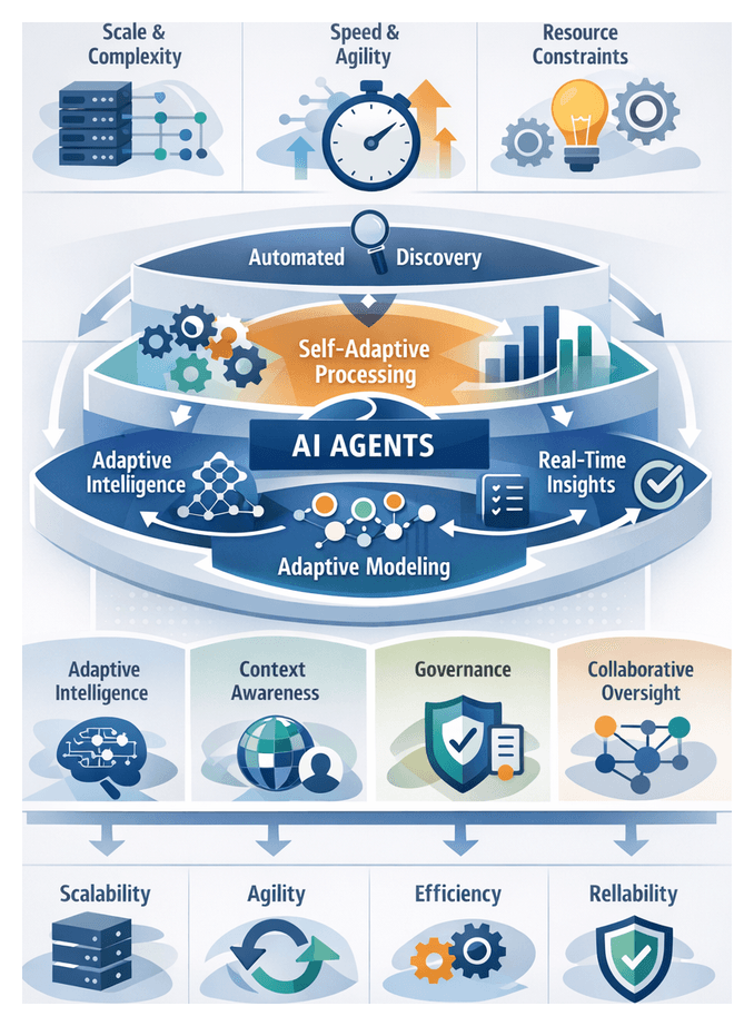 Scarcity of data science talent, decentralization of decision rights, and a cultural shift toward data-driven decision making drive agent adoption. Autonomous agents amplify existing teams by automating routine tasks and translating results into business-friendly narratives, enabling analysts to focus on domain interpretation. In federated models aligned with data mesh principles, agents deployed at the edge empower local teams under centralized governance guardrails. This balance accelerates insight delivery while preserving compliance and auditability.