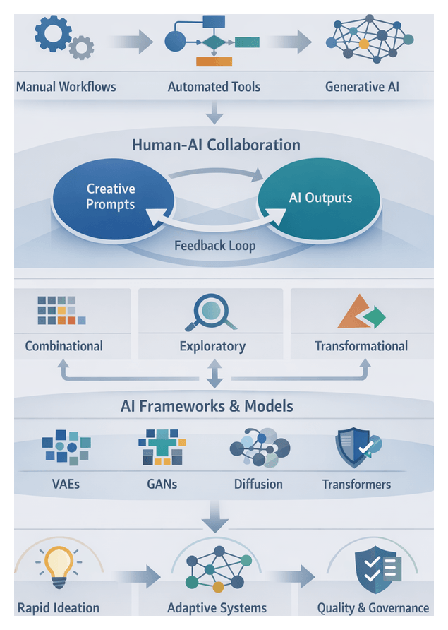 The creative industries have evolved from fully manual workflows to rule-based automation and now to data-driven generative systems. Early scripting engines and parametric tools accelerated tasks like layout adjustments and batch asset generation, yet they remained brittle and required extensive oversight. Today, platforms such as Adobe Sensei and Midjourney leverage deep learning to analyze vast image and text corpora, infer stylistic patterns, and generate novel design proposals at scale. These capabilities unlock rapid concept exploration and personalized content, but also introduce challenges: fragmented handoffs between AI suggestions and human judgment, overwhelming volumes of options, and inconsistent output quality that can erode trust in machine-generated ideas.