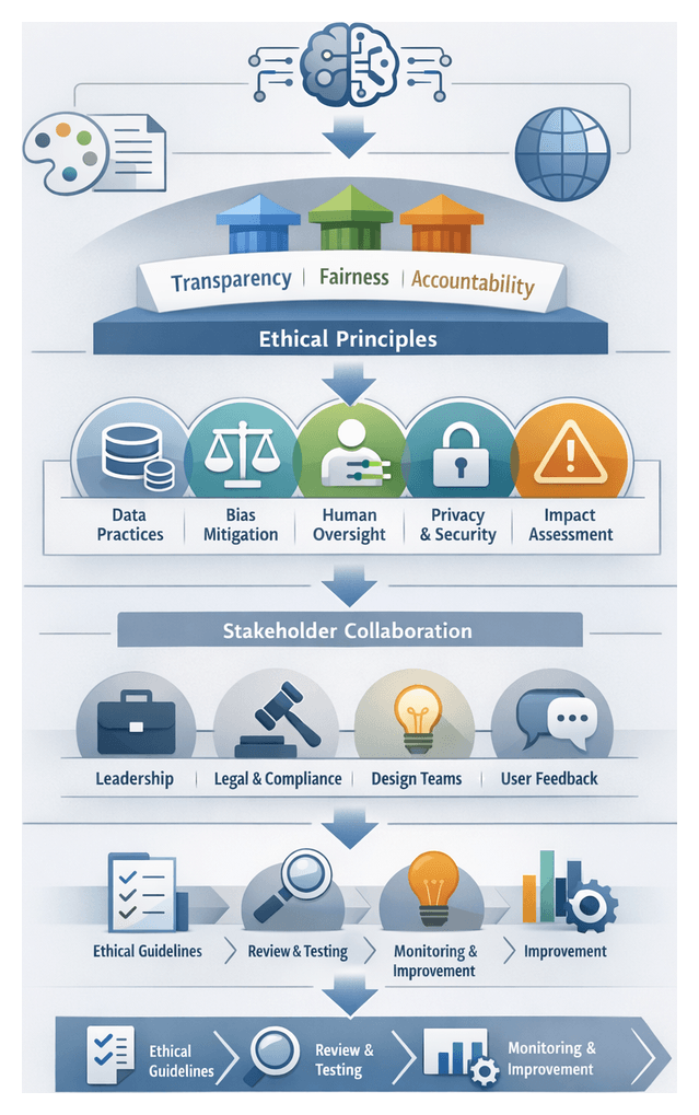 - Ethics by Design: Embed bias mitigation, accessibility checks, and privacy considerations throughout the design lifecycle. Formalize guidelines and conduct periodic audits to maintain accountability.