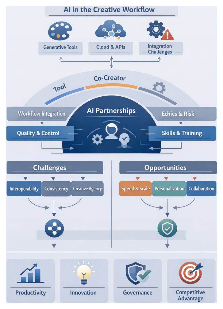 Throughout, interpretive lenses such as Sociotechnical Systems Theory, Human-Machine Teaming Models, Co-Creativity and Affordance Theory, Data-Driven Decision Frameworks and Ethical AI Governance illuminate strategic choices. Key takeaways include: