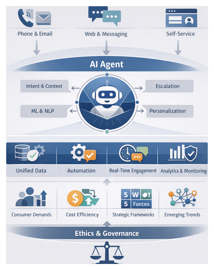 The evolving landscape presents both challenges and opportunities. Rising customer expectations and channel complexity increase operational risks, while emerging artificial intelligence technologies offer paths to scalable, cost-effective and personalized engagement. Understanding this context is vital for assessing how AI agents can deliver a sustainable competitive advantage.