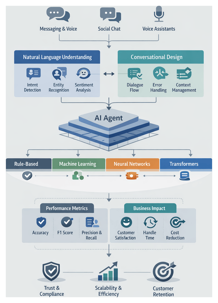 AI agents—also known as conversational agents or virtual assistants—represent an evolution beyond rule-based chatbots. They leverage natural language processing (NLP), dialogue management, machine learning, and continuous learning to interpret user intent, maintain contextual awareness, and generate human-like responses. Unlike rigid decision trees, AI agents adapt to new inputs, learn from interactions, and handle complex, multi-turn conversations.