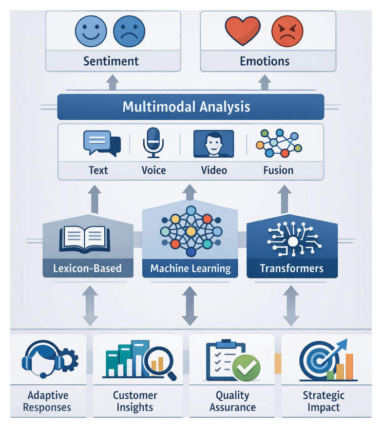 - Multimodal Sentiment: Integrates text, voice and visual cues for richer emotional profiling, supported by engines such as Lexalytics Salience and IBM Watson Tone Analyzer.
