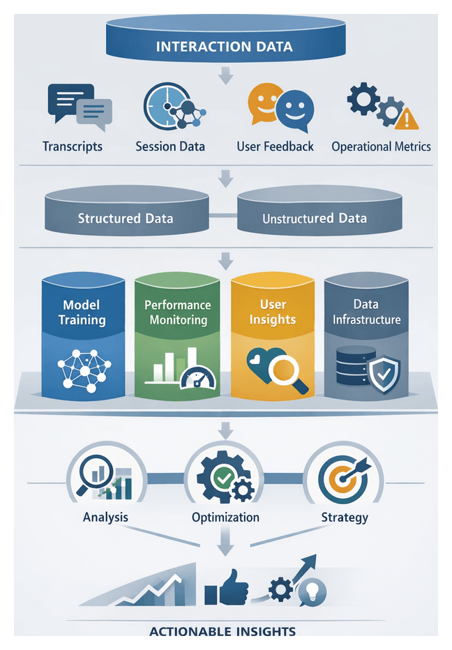 - Machine Learning models that learn continuously from interaction transcripts and user feedback.