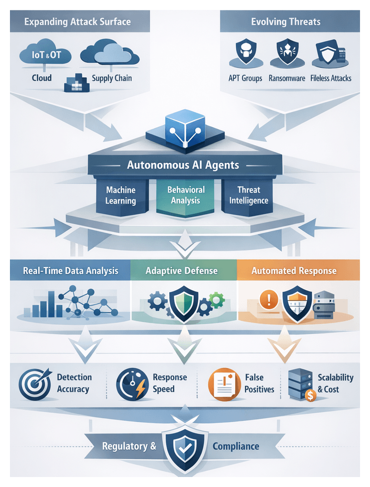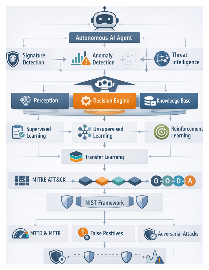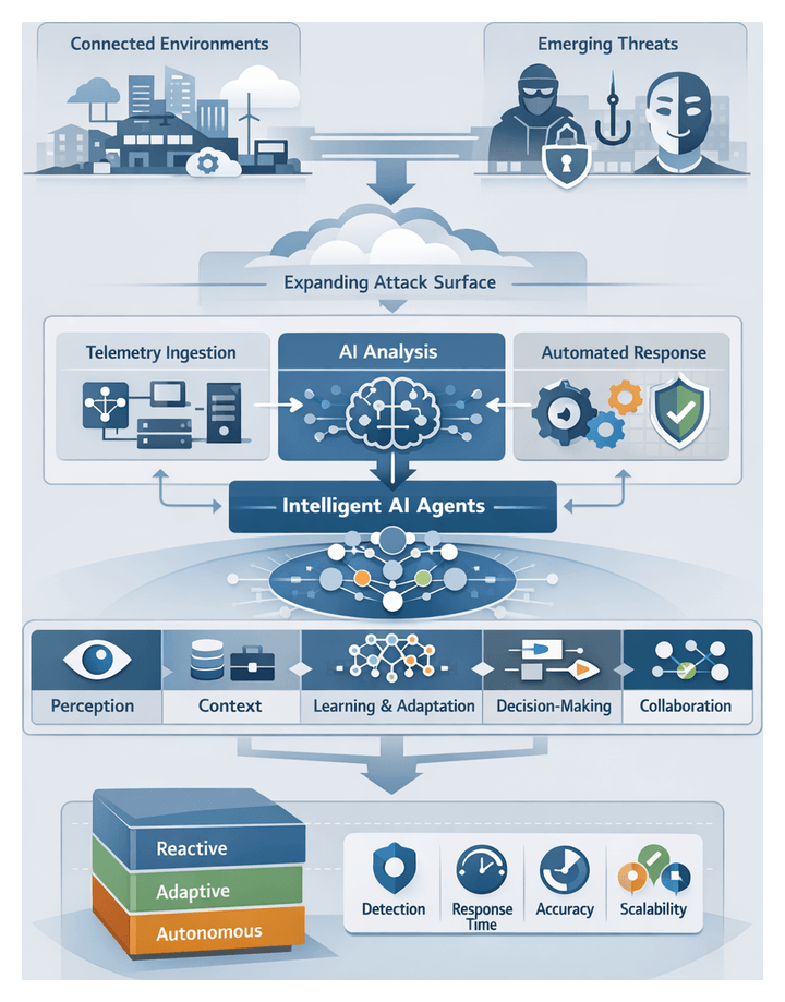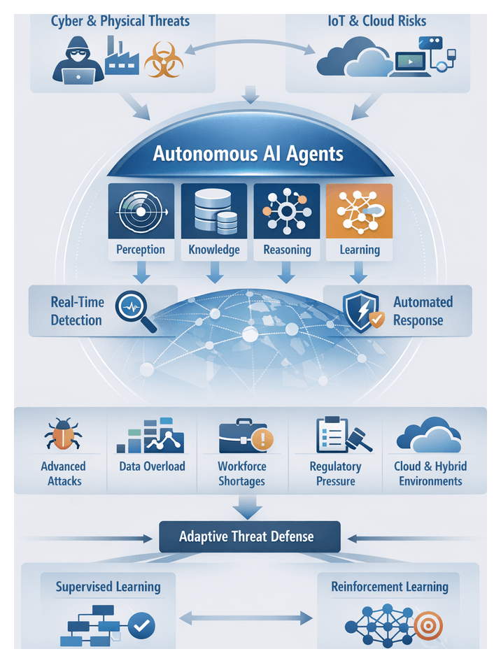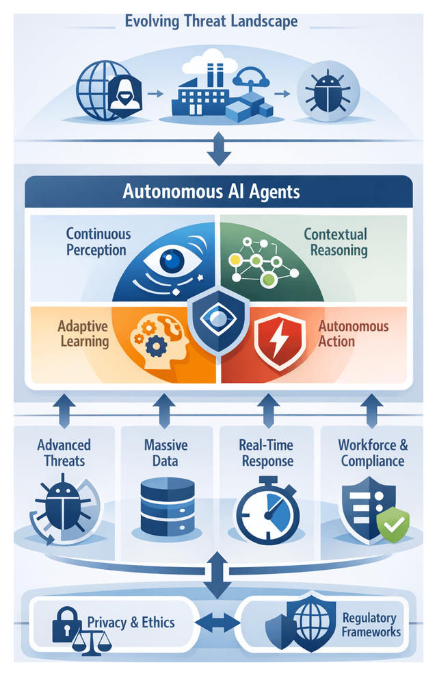 Autonomous AI agents represent a paradigm shift from reactive, rule-based security controls to proactive, self-directed systems that continuously learn, reason and act. Conceptualized as intelligent defenders, each agent maintains an ongoing perception of its environment, ingesting diverse telemetry streams, synthesizing contextual information and executing mitigation actions without manual intervention. By embedding advanced analytics engines, adaptive learning loops and policy-driven decision logic, autonomous agents evolve their detection strategies over time, refining models through feedback from false positives, adversarial testing and confirmed incidents.