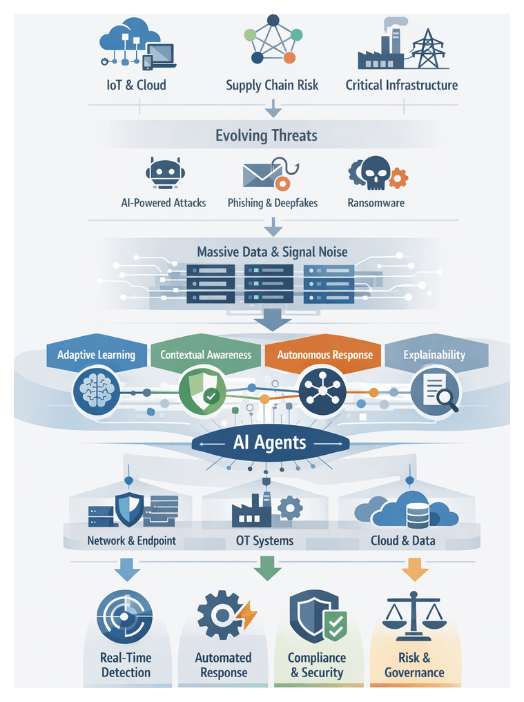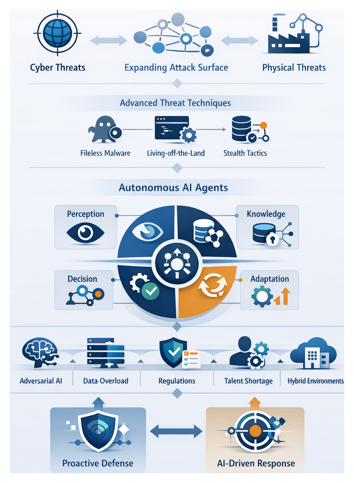 - Convergence of Cyber and Physical Security: Cross-domain attacks exploit both IT and OT systems. AI agents that ingest data from access controls, surveillance platforms, industrial sensors and network logs provide a unified risk view, essential for protecting critical infrastructure.