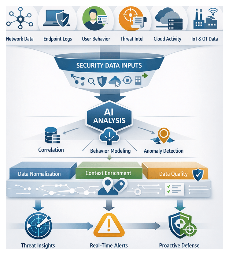 High-quality, normalized, timestamp-synchronized inputs from diverse sources maximize detection accuracy and minimize drift. Continuous profiling, schema versioning and validation checks are essential data governance practices.