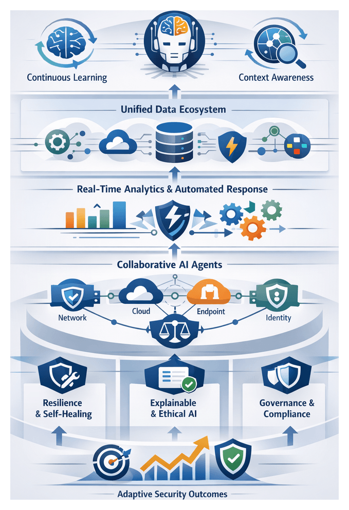 Within a multi-agent ecosystem, these systems collaborate and share intelligence to maximize coverage and reduce mean time to detection. Agents delegate tasks to human analysts or peer agents, escalate high-risk alerts and coordinate containment workflows across network segments, cloud environments and edge deployments. Research in autonomous systems underpins this approach, emphasizing robust decision-making under uncertainty, explainability and federated learning to balance centralized governance with distributed adaptability.