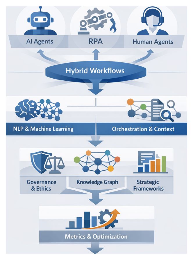 The tools, methodologies and frameworks presented here equip practitioners to design, govern and optimize hybrid AI-human agent ecosystems that balance automation efficiency with human empathy, ensure ethical compliance and drive strategic value.