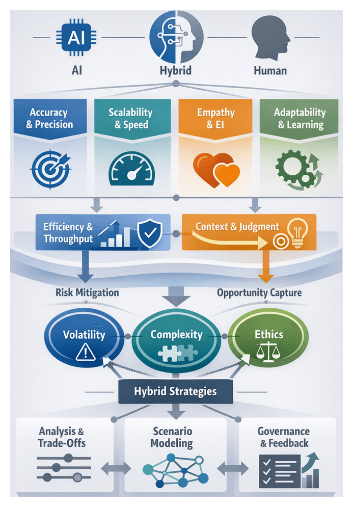 This guide provides senior leaders and domain specialists with a structured roadmap and analytical toolkit for designing, implementing, and governing hybrid AI-human ecosystems. Readers will benefit from:
