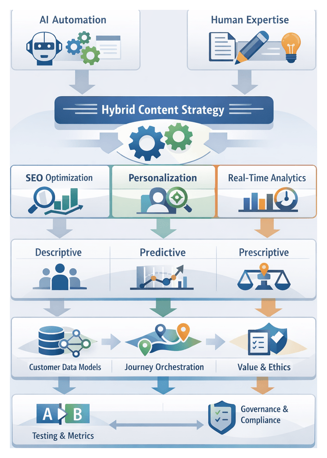 5. Performance Dashboards: Track KPIs for human-authored and AI-generated content across channels to inform continuous optimization.