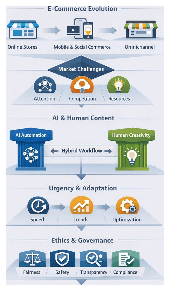 By integrating these definitions, frameworks, strategic guidelines, and tools, content leaders can build scalable, compliant, and high-impact e-commerce content programs where human creativity and AI efficiency reinforce one another.