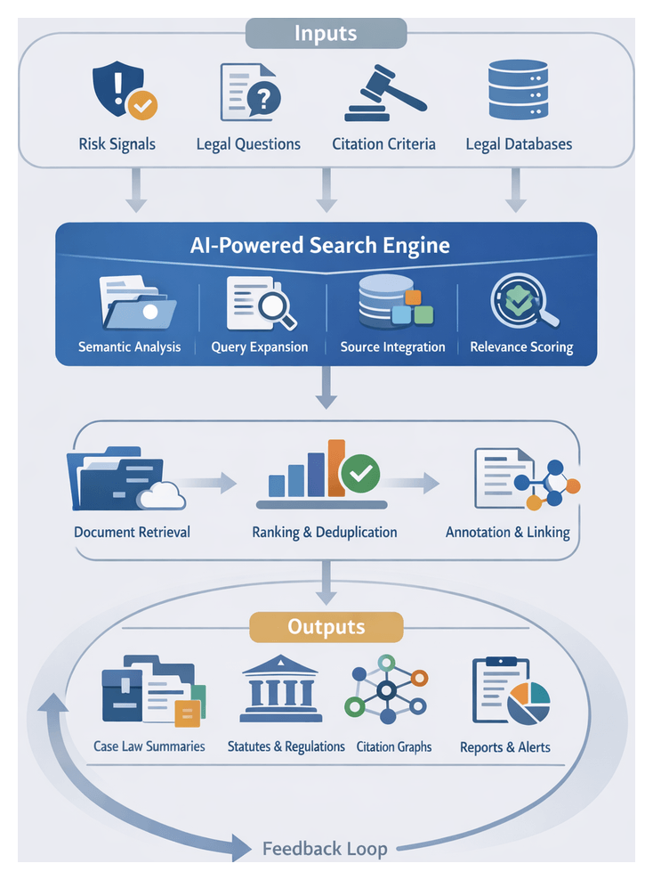 - Automated Research: High-priority items trigger semantic searches for relevant case law and statutes.