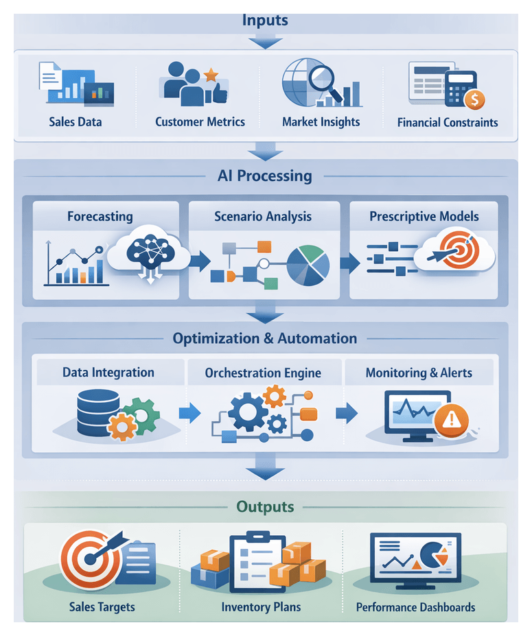 - Dependency Management: Orchestration enforces data readiness checks before invoking inventory optimization or pricing models.