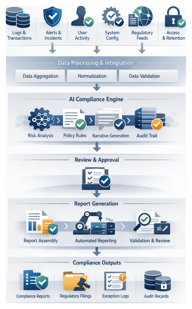 - Compliance Officers verify that workflows meet regulatory standards