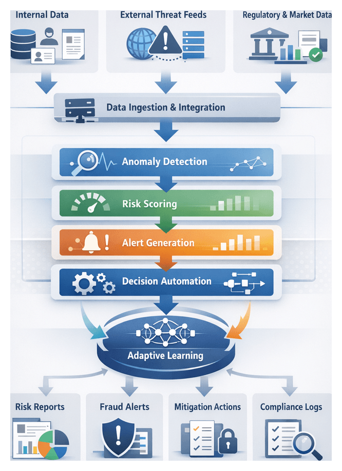 Traditional rule-based systems struggle with the volume, velocity and variety of modern risk data. Integrating AI across the workflow enables automated preprocessing, real-time detection and adaptive learning to deliver timely, accurate risk insights.