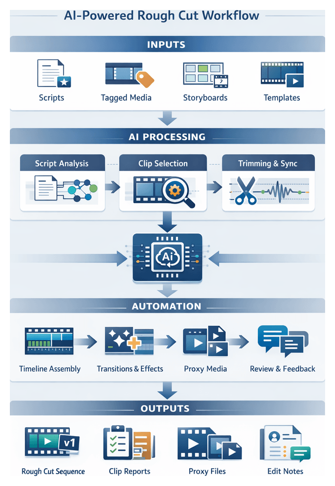 Tools like Blackbird match script cues with tagged assets, assembling preliminary timelines. Decision-support engines rank clip combinations by story flow and duration targets. Editors adjust low-confidence segments within integrated editing environments, while orchestration logs every transition.