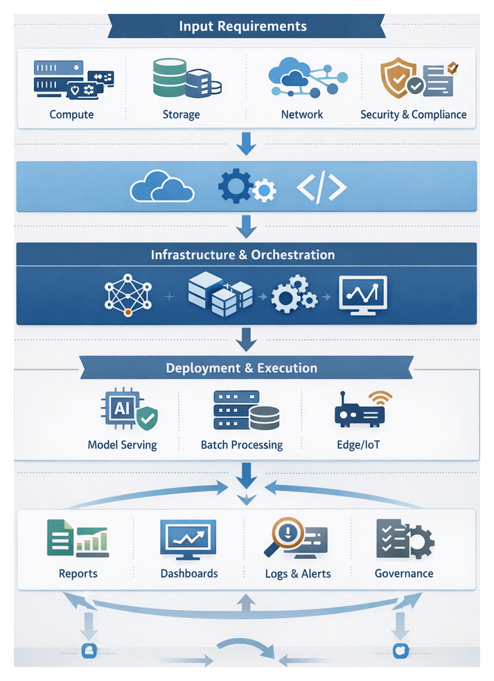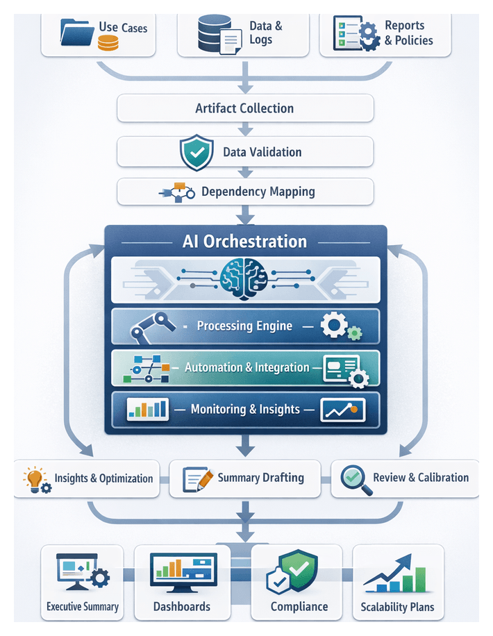 - Monitoring and Logging: Captures telemetry on execution times, error rates, and resource utilization for compliance and analysis.