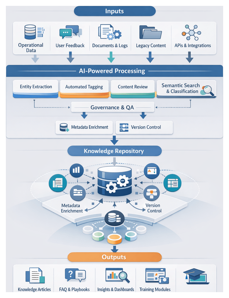- Stale or Conflicting Content: AI-driven review cycles for consolidation or deprecation