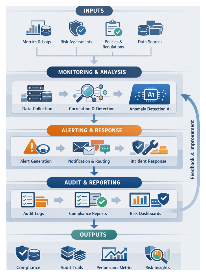 - Monitoring and Logging Services: Telemetry collection and audit trails for governance.